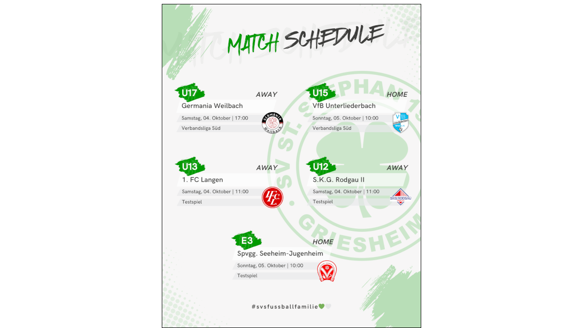 Am kommenden Sonntag, den 19. März, gastieren beide Fußball-Teams des SV St. Stephan bei ihren jeweiligen Kontrahenten des SV Erzhausen.