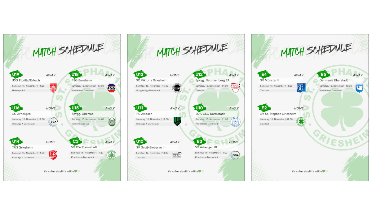Am Samstag um 11:00 Uhr empfängt die E3 des SV St. Stephan die SG Arheilgen III am Südring. Nach dem Auf und Ab der vergangenen Wochen wollen die Kleeblätter wieder das Gesicht zeigen, das sie vor drei Wochen im Derby bewiesen haben. Der Fokus liegt auf konstanteren Leistungen und einem geschlossen starken Auftreten in Offensive wie Defensive. Wenn das gelingt, dürfen sich die Zuschauer auf ein intensives, attraktives Spiel freuen.
