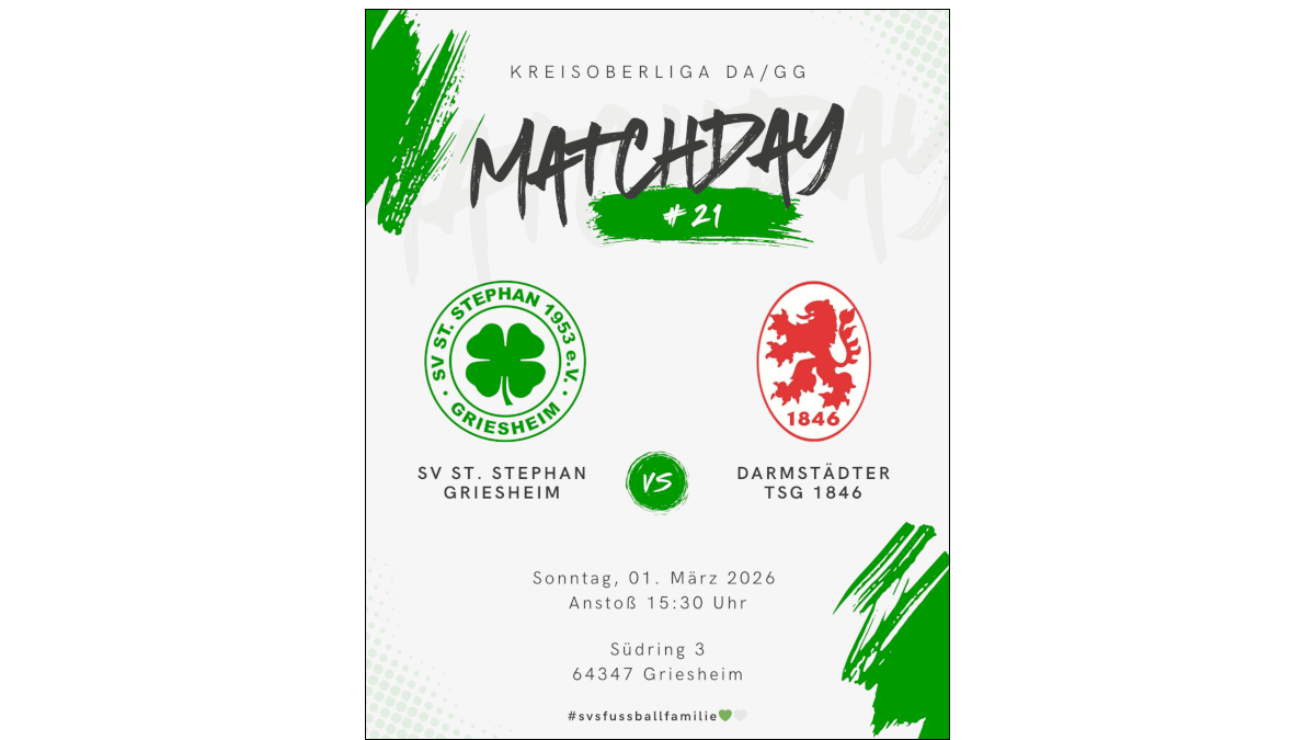 12:00 Uhr U16 – Darmstädter TSG 1846 II (Kreisliga Darmstadt)